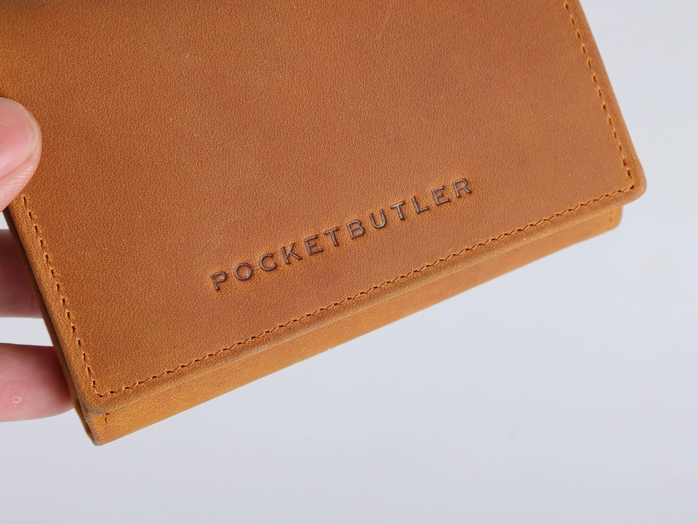 Der Pocketbutler besteht aus echtem Rindsleder. Die schwarze Variante ist etwas steifer, die braune etwas weicher. Mit der Zeit entstehen natürliche Gebrauchsspuren, jeder Pocketbutler entwickelt so seine einzigartige Optik. Das ist bei Leder normal.